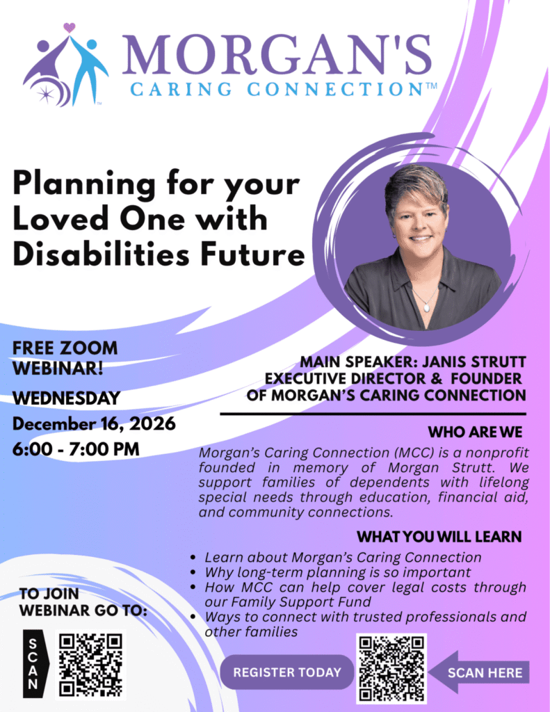 This educational webinar is presented by Janis Strutt, Executive Director & Founder of Morgan’s Caring Connection (MCC). MCC is a nonprofit founded in memory of Morgan Strutt, dedicated to supporting families through education, financial aid, and community connections.